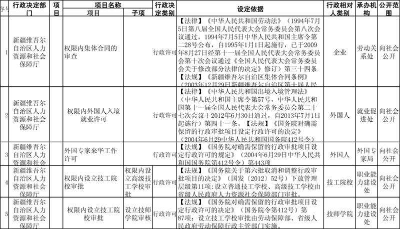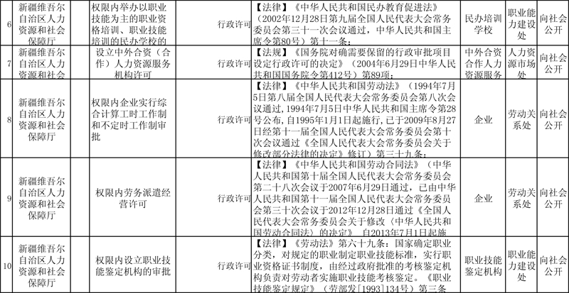 人社厅行政许可目录(单位)