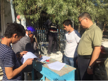 9月20日一大早,强尕三村村委会门口就挤满了村民,他们是来给即将到塔里木乡草湖拾花务工的亲人朋友送行的。 为贯彻落实精准扶贫任务要求,拓展贫困家庭就业渠道,切实帮助贫困户实现脱贫致富,驻强尕三村工作队与塔里木乡积极对接,联系输送300名富余劳动力赴草湖进行为期2个月的拾花务工,预计人均收入达到10000元左右。 “今年我们村已经转移400余名富余劳动力,不少贫困户通过外出务工实现了脱贫增收,日子越来越好。这多亏了‘访惠聚’驻村工作队的帮助。村党支部书记艾尼瓦尔·托乎提说。 排队签订拾花合同书